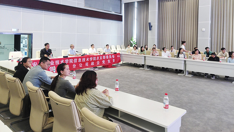 10月12日上午,安慶職業(yè)技術(shù)學(xué)院信息技術(shù)學(xué)院黨總支書記、院長疏國會(huì)率全體教師黨員前往安慶電信開展黨建聯(lián)建交流活動(dòng)。安慶電信政企事業(yè)部主任石楊華、教育部主任丁毛毛等接待了團(tuán)隊(duì)一行。